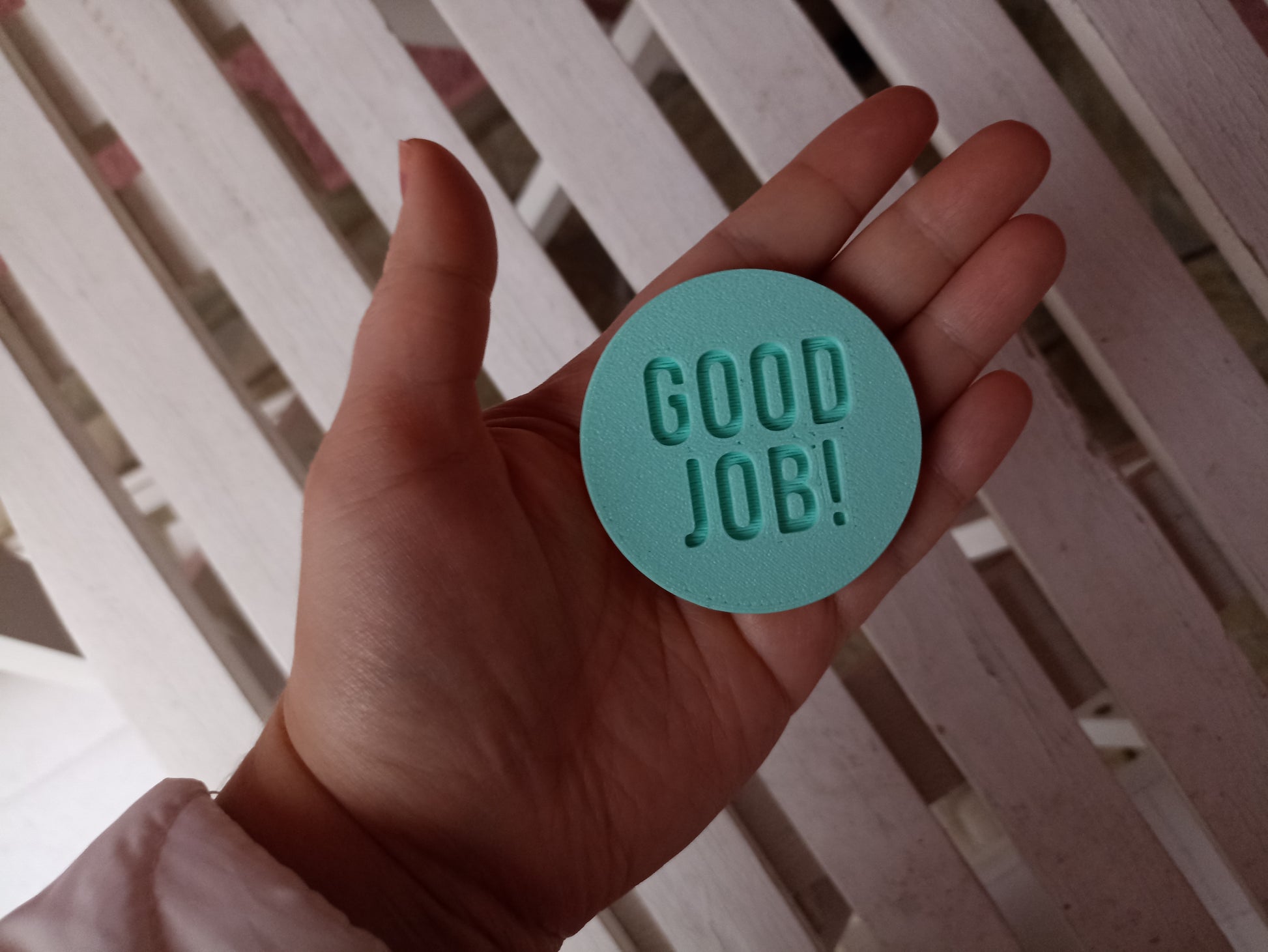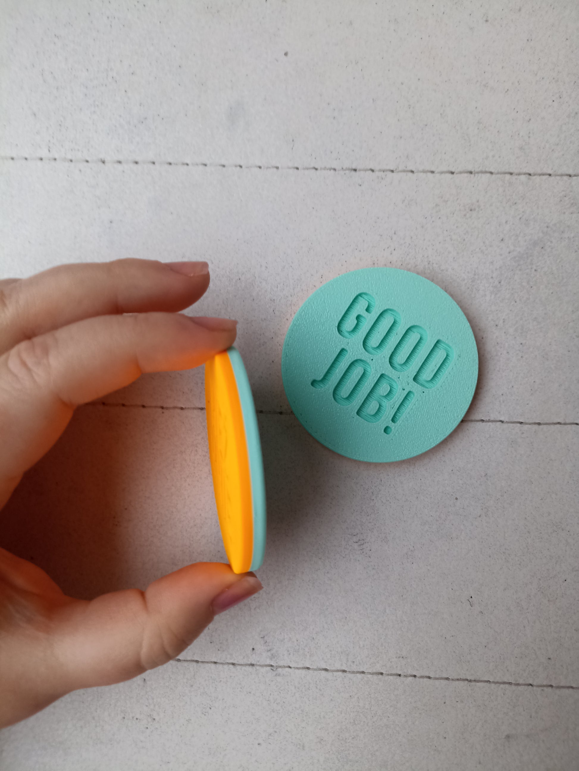 Dwustronny żeton w pięknych kolorach, którego nigdzie indziej nie dostaniesz. Będzie przypominał o tym, że trzeba wziąć leki i nagradzał za tę trudną czynność.