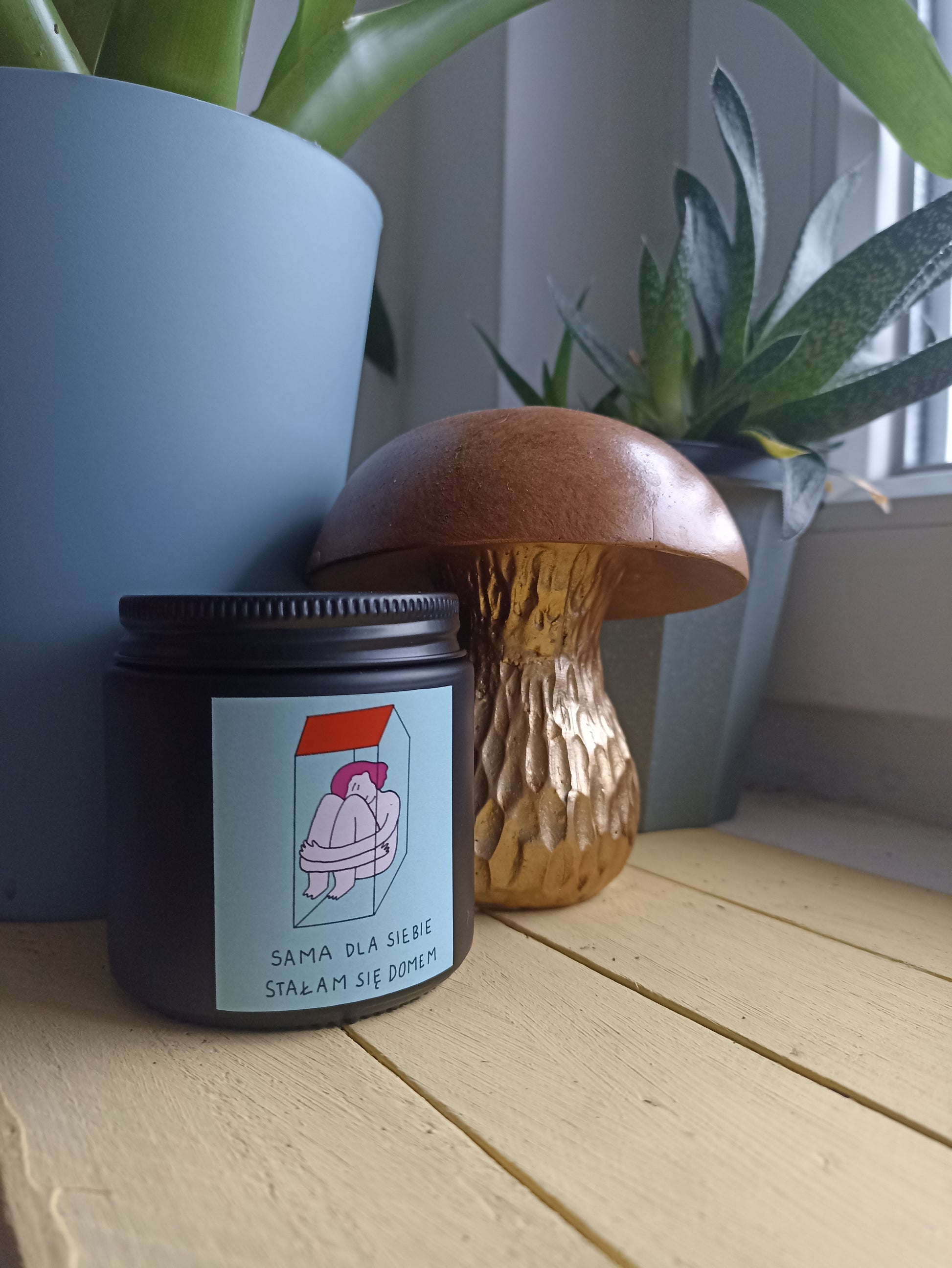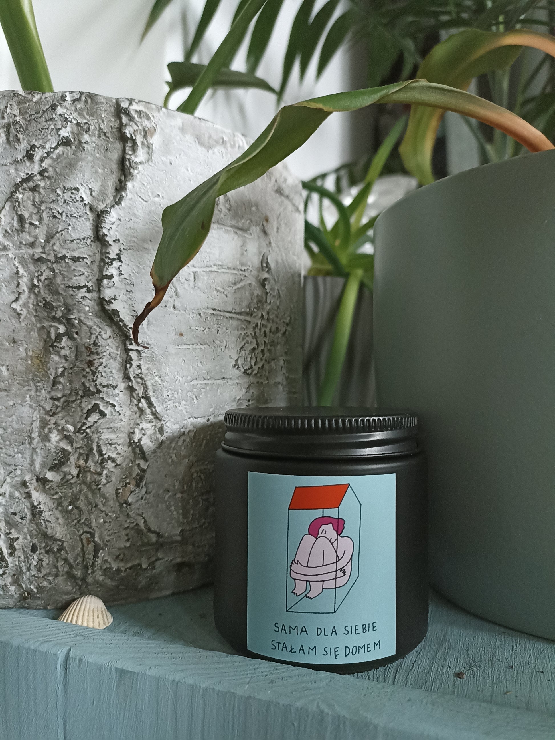 Etykieta jest specjalnie zaprojektowana na potrzeby świeczek. Mówi o naszym ciele i duchu jako o domowej przestrzeni pełnej troski i akceptacji.