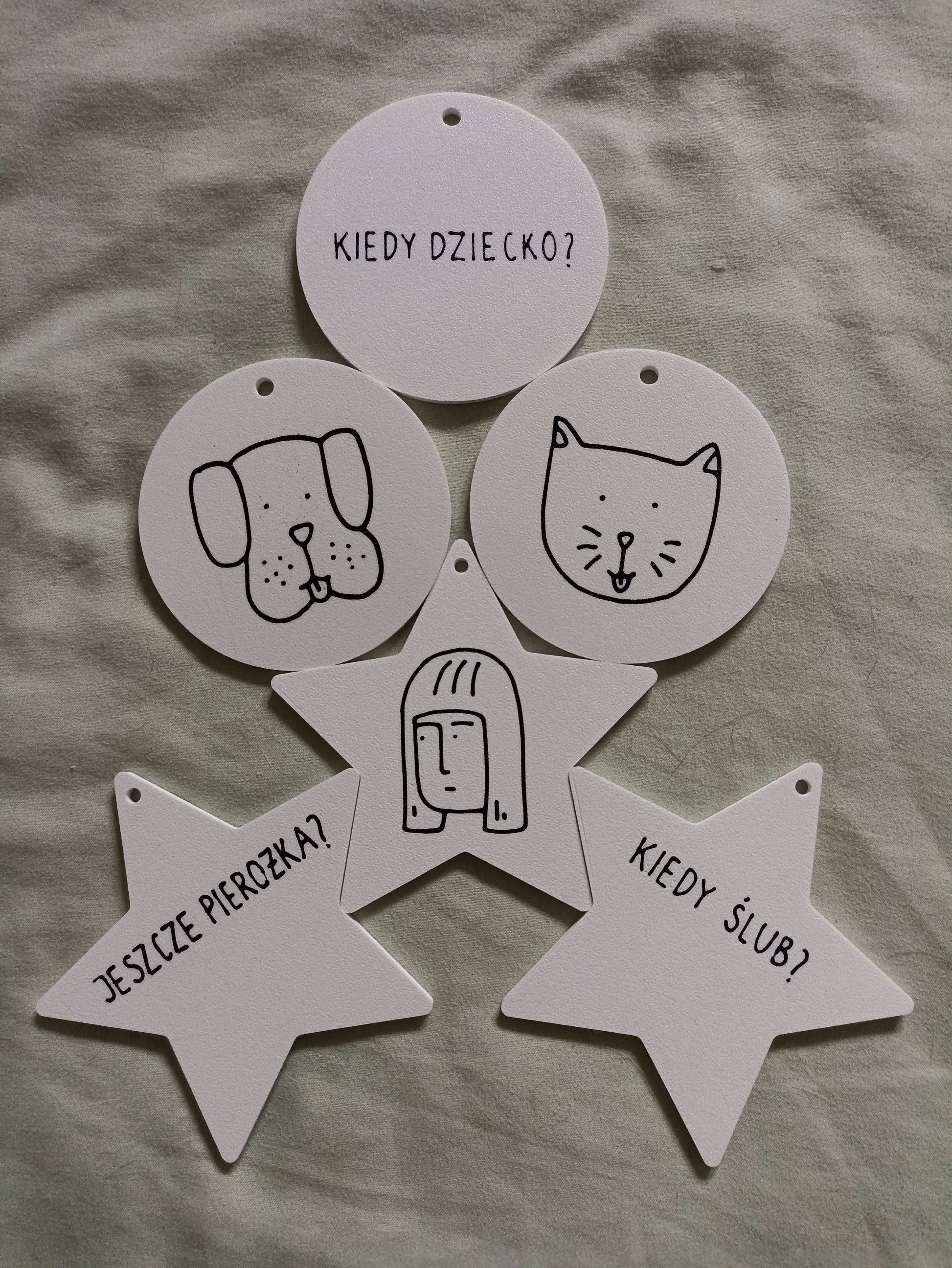 Na tych zawieszkach znajdziesz nie tylko pieski i kotki, ale przede wszystkim niewygodne pytania. Zanim usłyszysz je przy świątecznym stole - zawieś je na choinkę.
